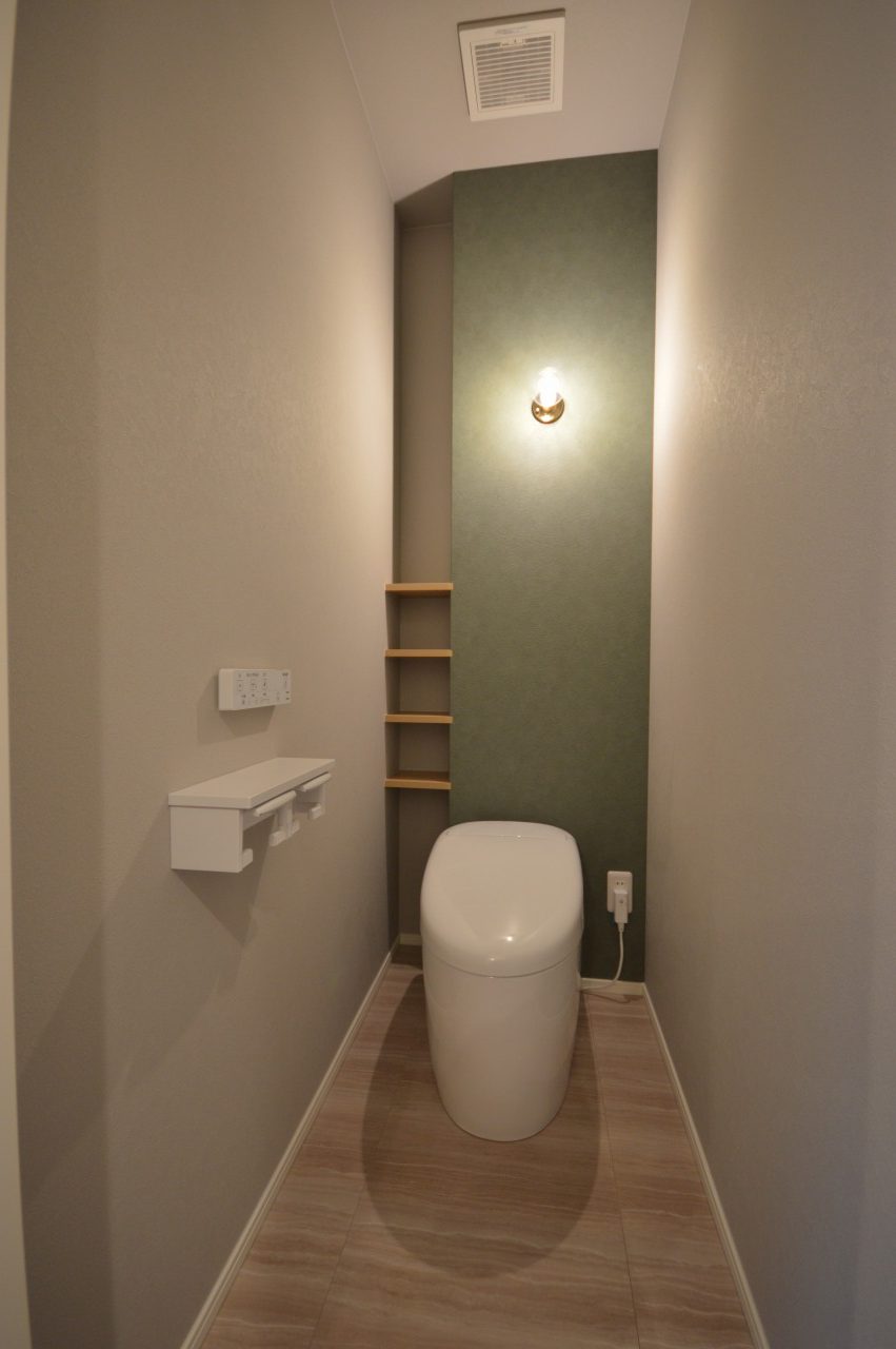 流行の窓無しトイレ。ブラケット照明が主役に。