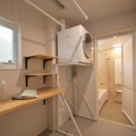 乾太くんと採用し、時短が可能なランドリー。乾燥させたらすぐに畳めるカウンター付き。