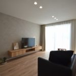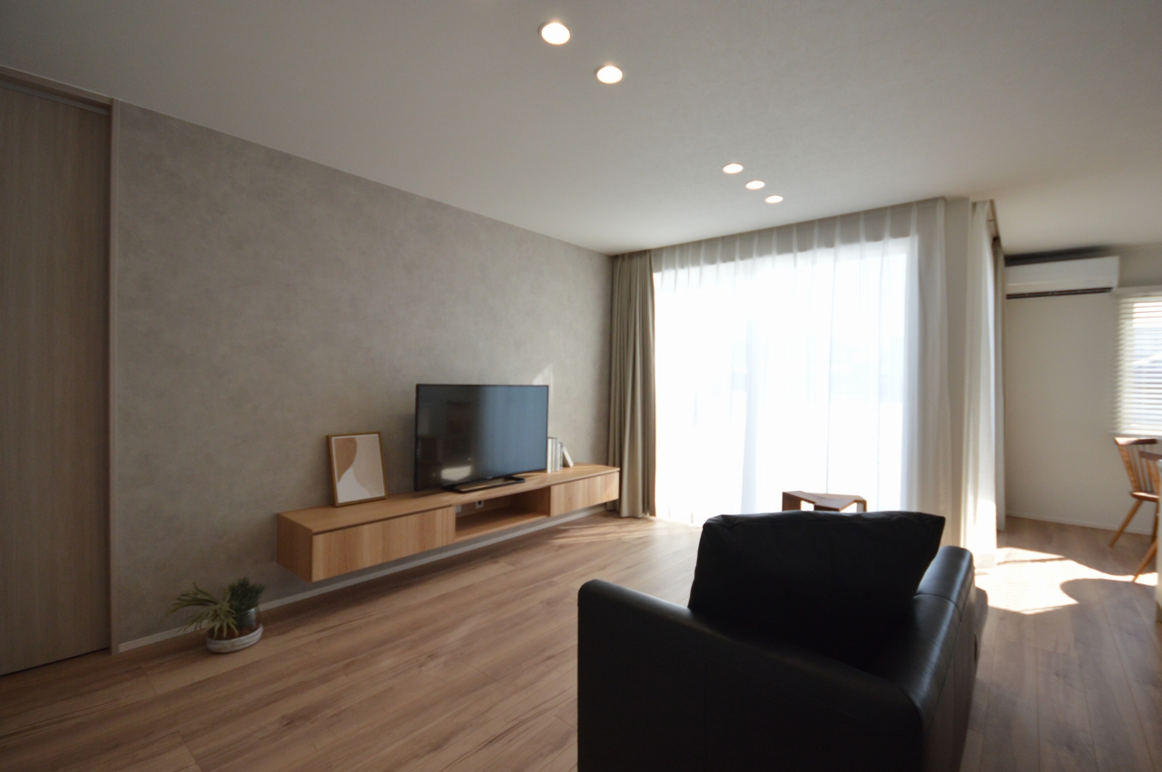 TVボードも造り付けでスッキリ配置。