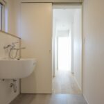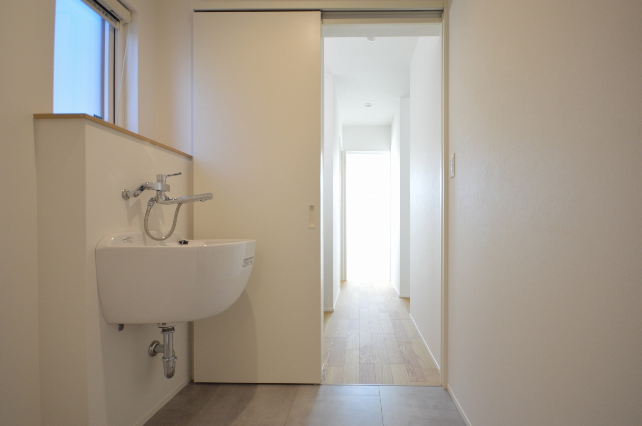 2階ホールにも手洗いスペースを設置。加湿器の給排水などにも便利。