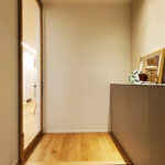 玄関をくぐると、木のぬくもりを感じるフローリングと落ち着いた照明が心地よく迎えてくれます。