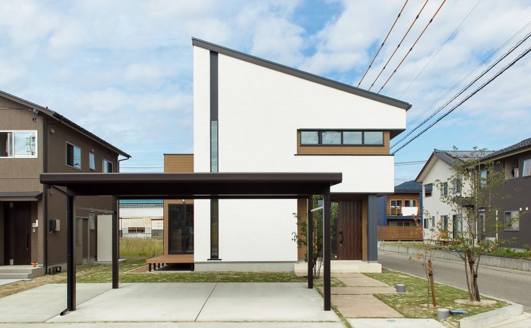 【035】スマートシンプルな外観で、半吹抜けリビングの家