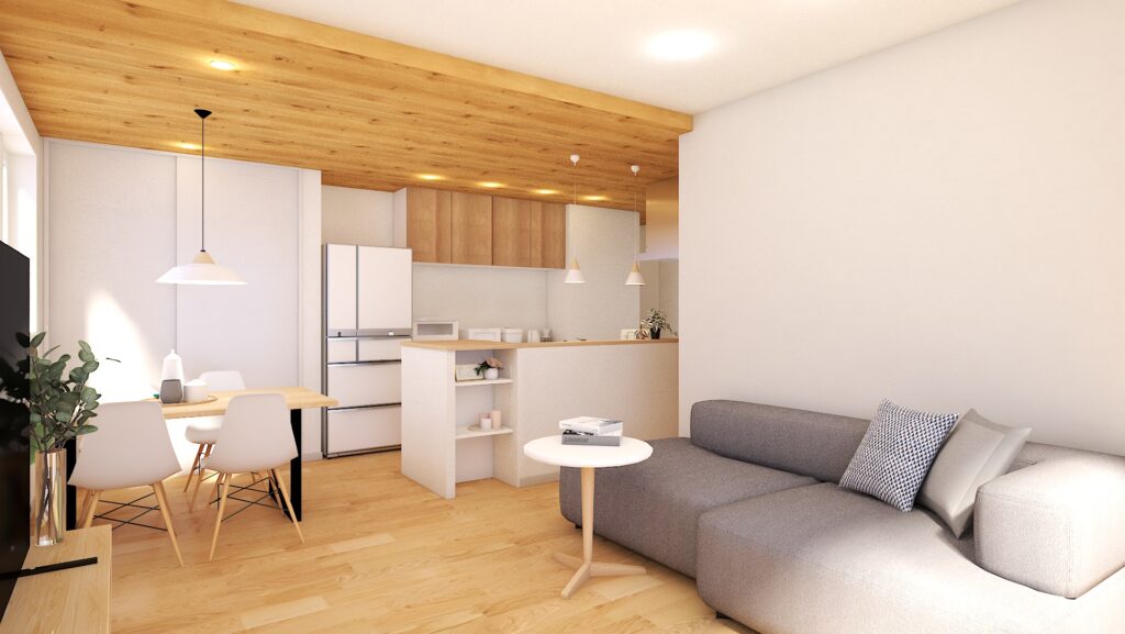 19.5帖のゆとりあるLDKは、家族が自然と集まりたくなる心地よい空間。