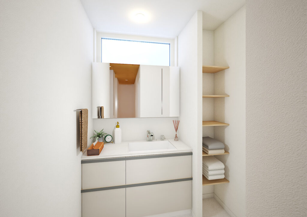広々とした洗面台とランドリールームで毎日の家事や身支度も楽しく