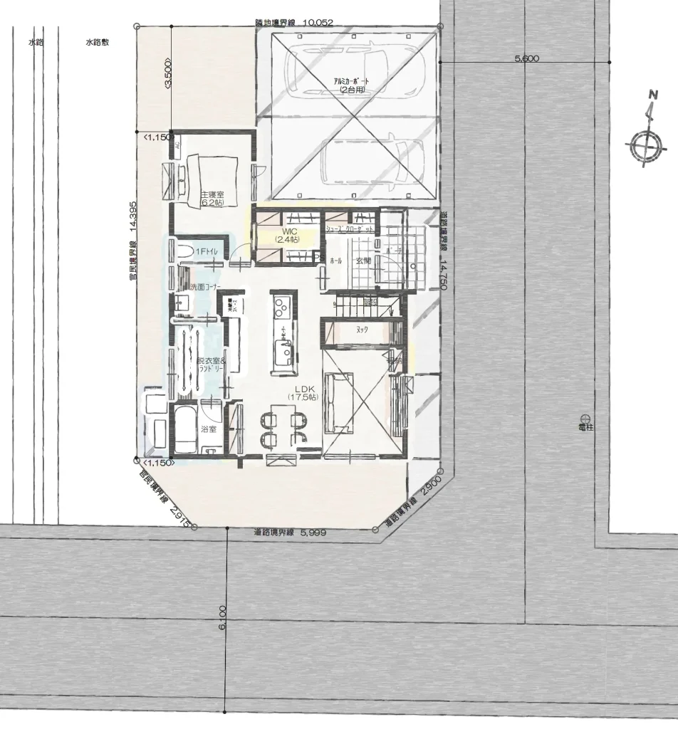 玄関からキッチンへ直行できる「おかえり動線」、キッチン裏に水まわりを集約した「家事ラク動線」、行き止まりがなくスムーズに移動できる「回遊動線」で、毎日の生活がグッと楽になります。