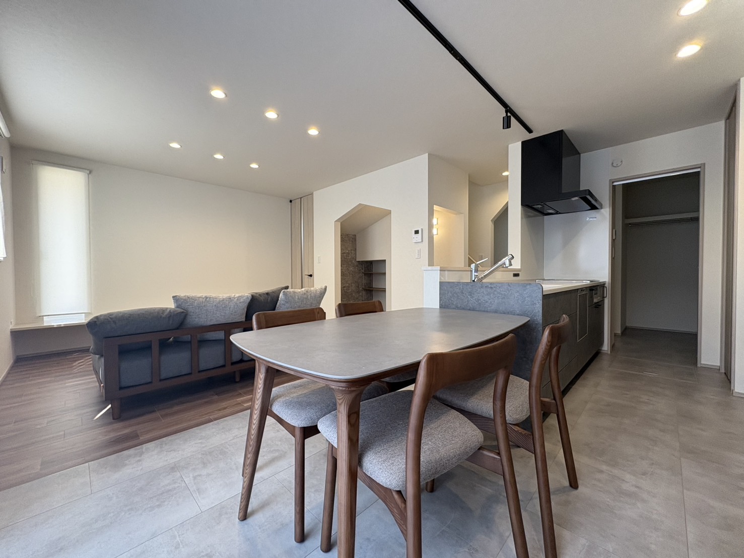 横並びのダイニングキッチンは、配膳がしやすく、家事の動線もスムーズで、家族のコミュニケーションも自然と広がります。