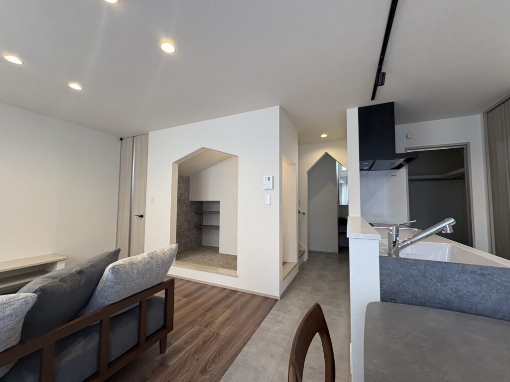 横並びのダイニングキッチンは、配膳がしやすく、家事の動線もスムーズで、家族のコミュニケーションも自然と広がります。